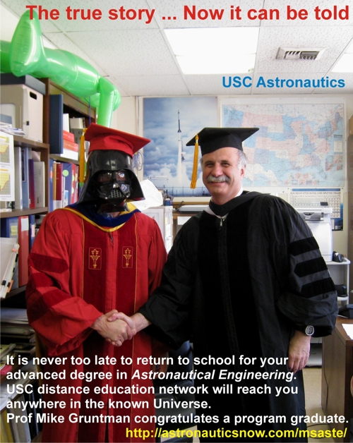USC Astronautics Prof Mike Gruntman congratulates a recent program graduate.